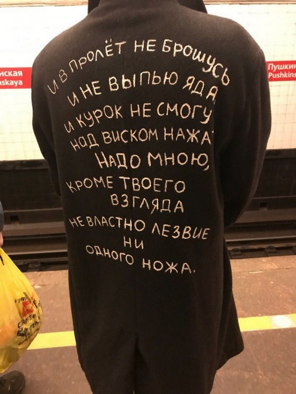 Модники и чудаки из метро (20 фото) 4 февраля 2022 0 Категория: мода Внимание, следующая остановка - станция "Модники и чудаки из метро". Уникальное место с самыми необычными пассажирами. Неподготовленного человека они могут напугать, но нет причин для беспокойства. Просто они очень модны и совсем немного чудны. Поделитесь новостью с друзьями: Facebook Twitter Pinterest 0