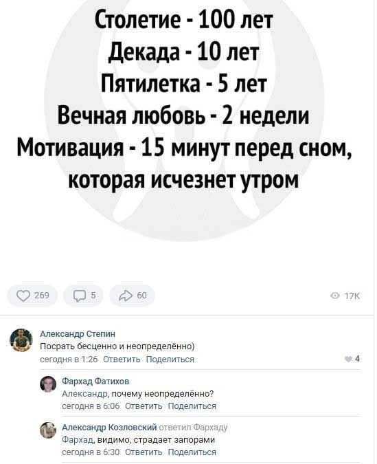 Комментарии в разных группах к постам (50 фото) 5 сентября 2022 0 Категория: смешное Комментарии в разных группах к постам, которые вызвали улыбку. Поделитесь новостью с друзьями: Facebook Twitter Pinterest 0