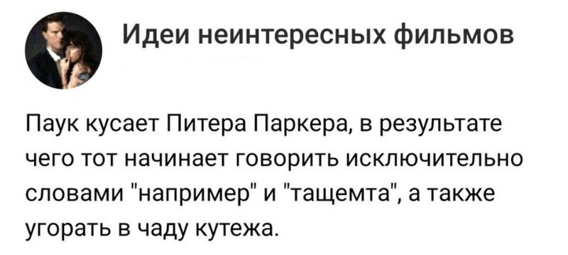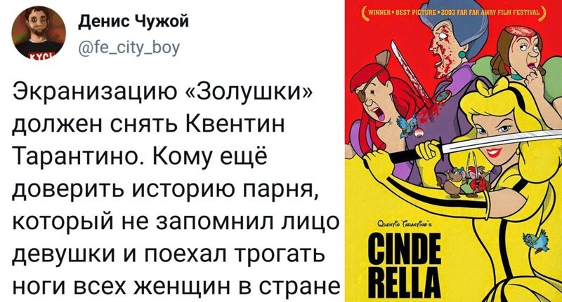 Рик и Морти в собесе, сказка о лысой покрышке и другие безумные киноидеи (21 фото) 8 сентября 2022 0 Категория: смешное Перешлите этот пост знакомым голливудским продюсерам или членам Фонда кино. P. S. Поделитесь новостью с друзьями: Facebook Twitter Pinterest 0