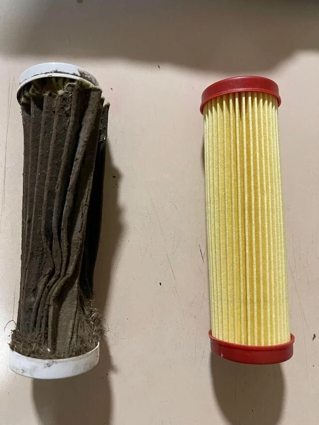 Воздушный фильтр, который я только что вынул из газонокосилки, и тот, на который я его заменил