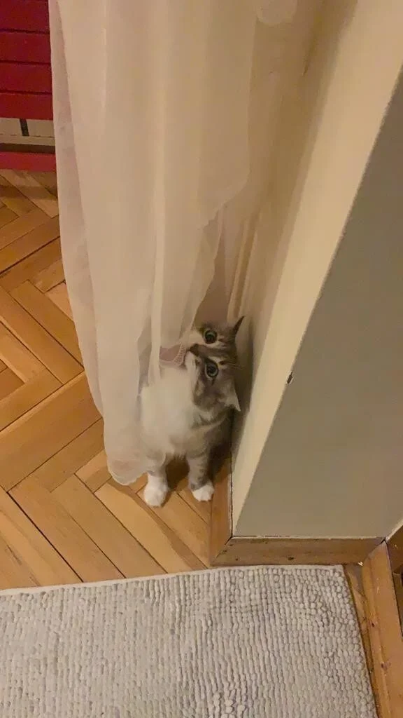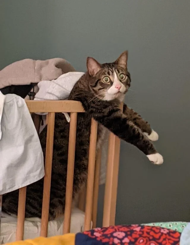 Он запрыгнул в детскую кроватку и застыл так минут на 10