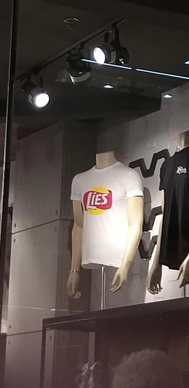 5. Фирменный логотип Lay’s, но на футболке и с честным исправлением на «Lies»