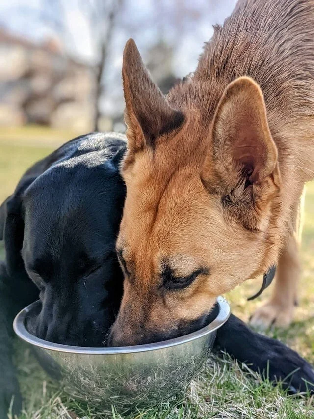 Мой пёс испугался и занервничал, но друг его успокаивает