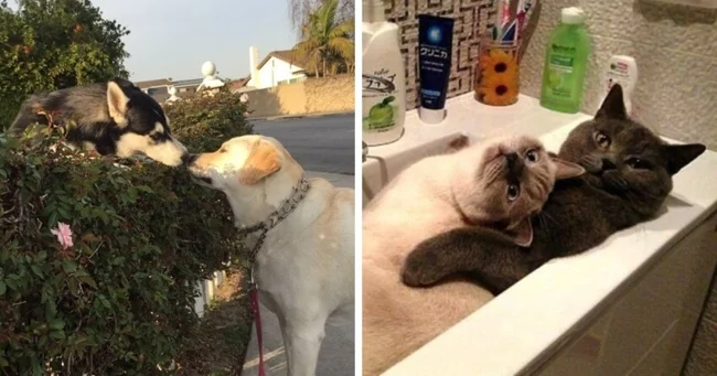 Мы уже не раз убеждались — чувства животных бывают такими же сильными и крепкими, как у людей. Так что нет ничего удивительного в том, что коты и собаки поддерживают между собой дружеские, а часто и романтические отношения! Как и люди, они иногда отправляются на свидания, устраивают семейные фотосессии, поддерживают друзей в сложные моменты и вместе готовы на любую шалость. Причём домашние питомцы никогда не стесняются проявлять свои эмоции — а нам остаётся только смотреть на эти удивительные моменты и умиляться не меньше, чем когда мы рассматриваем чей-то семейный альбом!
