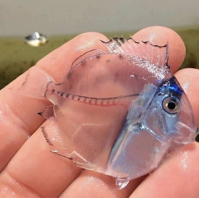 Полупрозрачный детёныш рыбы-хирурга