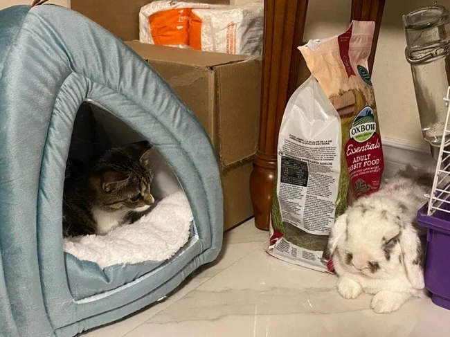 Стоило мне купить лежанку для кролика, как мой кот тут же её оккупировал