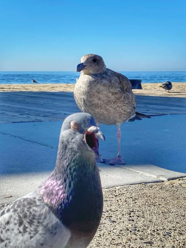 17. Я хотел сфотографировать чайку, но в кадр вошёл сонный голубь