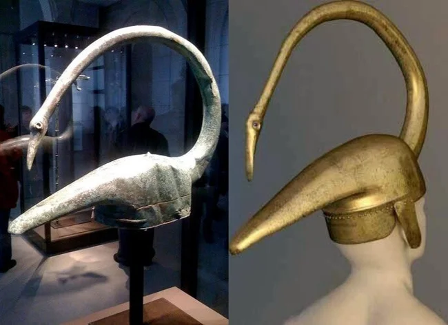 Галльский бронзовый шлем в форме лебедя, найденный археологами в Тинтиньяке, Франция