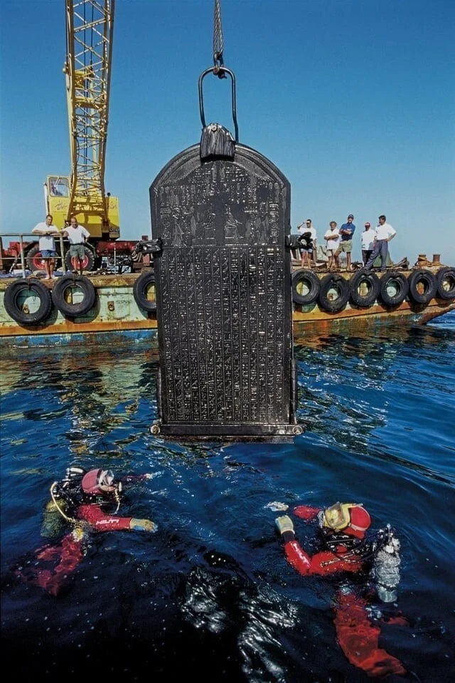 Исследователь понял, что это он, благодаря чёрной гранитной плите, на которой было высечено его название. Под водой также находились останки затонувших кораблей, монеты, драгоценности и различные предметы быта.
