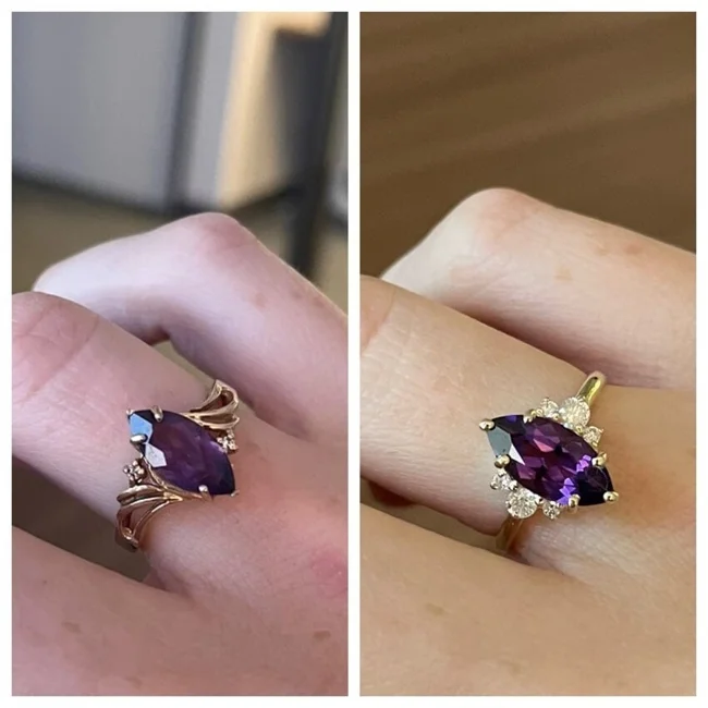 Я посчитала, что старая оправа не подходит под мой стиль и сделала более современную. Но и бабушкину оправу я тоже сохранила, чтобы в своё время передать кольцо с дополнительной оправой своим детям.