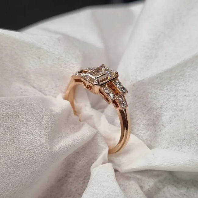Это кольцо из 18-каратного розового золота с бриллиантами я сделал для своей невесты.