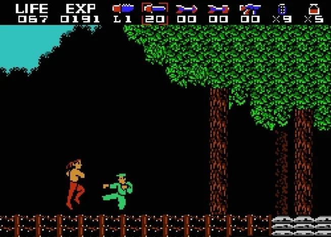 Изначально у Гейба в наличии есть только его собственные кулаки (как и в версии на NES), но он может выбивать из врагов разнообразное оружие, например нож или узи.