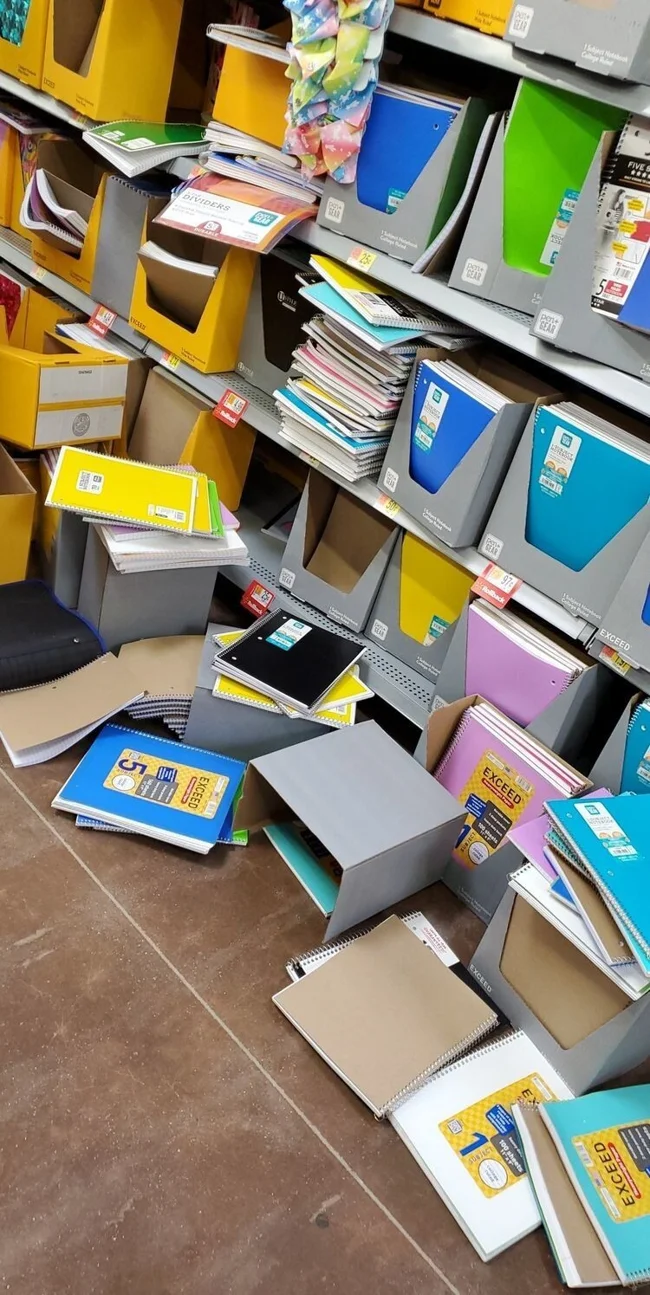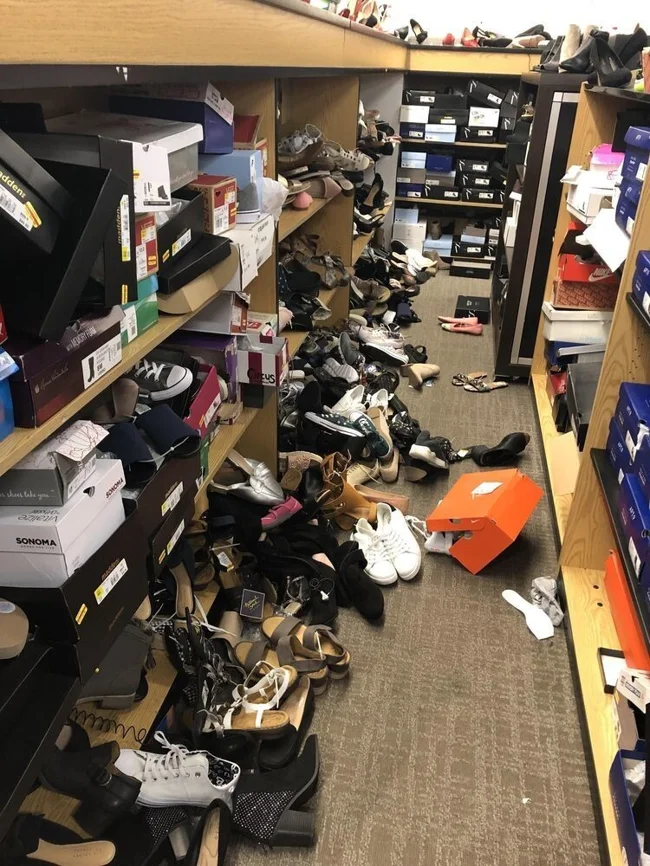 В каком виде покупатели оставили этот отдел с обувью в магазине