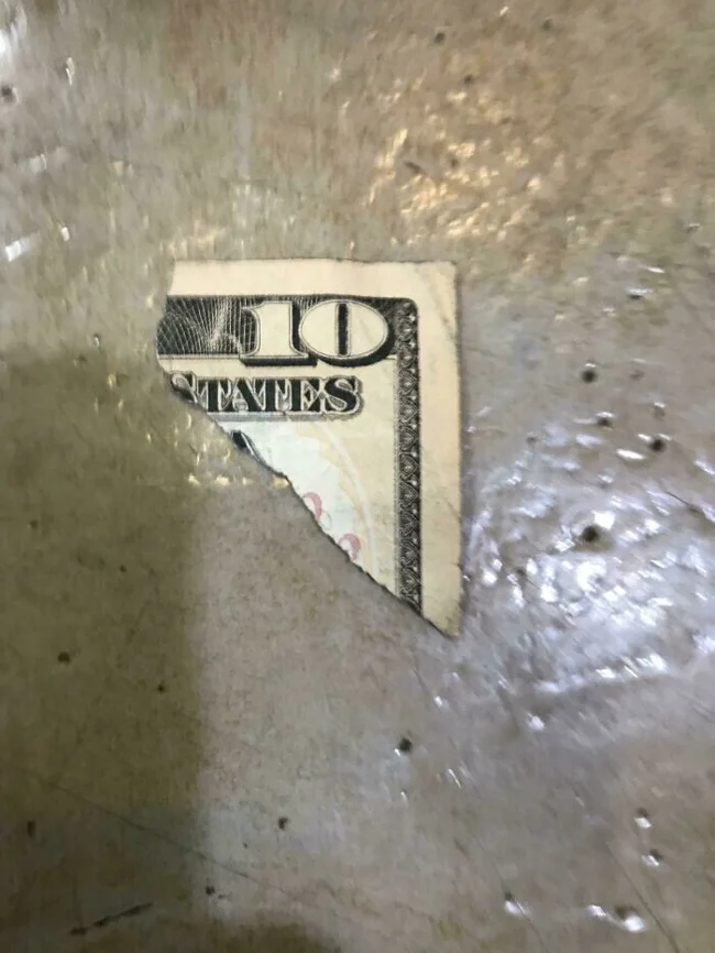 «Это были дети, один из которых сказал: "Я потерял остальное, но вы все еще можете видеть, что это десятка". Думаю, что у них никогда было больше половины купюры, вероятно, они просто нашли кусок и подумал, что нашли "деньги"», — написал автор фото. Также автор написал, что он бы вызвал полицию, будь это не дети ????