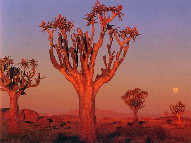 Ещё одно характерное растение пустыни — кокербом, или колчанное дерево — суккулент высотой до 7 м.