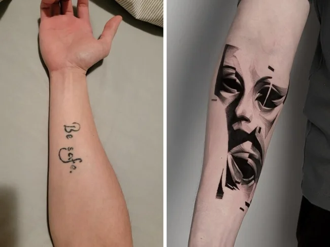 Есть множество талантливых тату-мастеров, способных исправить ошибку юности и подарить рисунку новую жизнь. Перед вами подборка работ татуировщиков, которые удачно перекрыли старые татуировки клиентов.