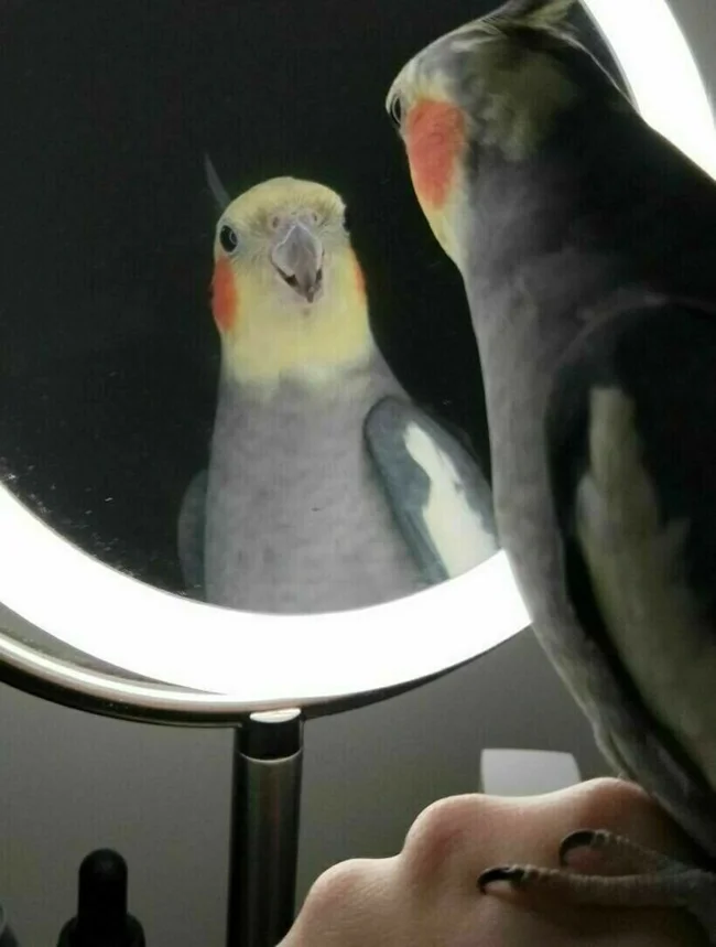 Попугаи обожают смотреть на свое отражение и разговаривать с ним