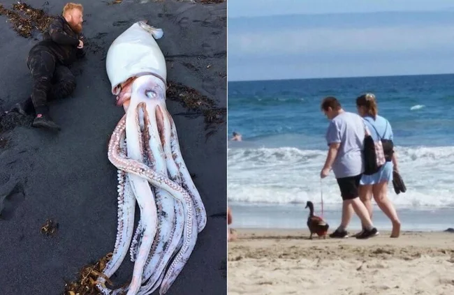 Выброшенный на берег гигантский кальмар, Веллингтон, Новая Зеландия