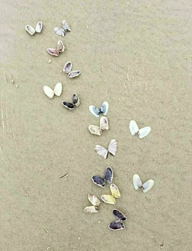 Кто-то красиво разложил ракушки, которые напоминают бабочек