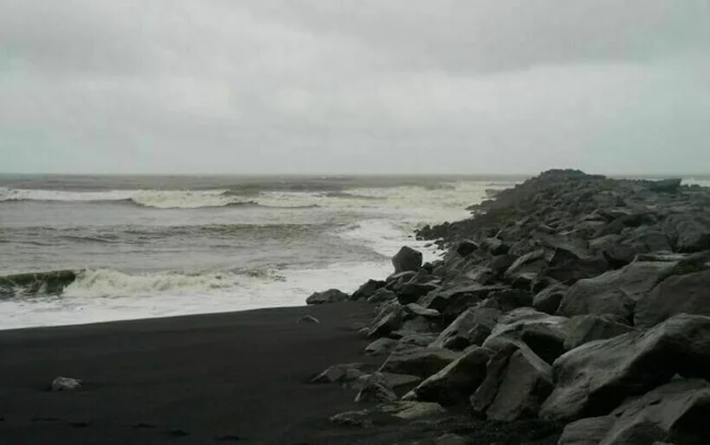 Любопытно, что это полноцветный снимок, а не отретушированный в специальных программах. Просто пляж, камни, море и небо в момент съемки действительно были в серых тонах.