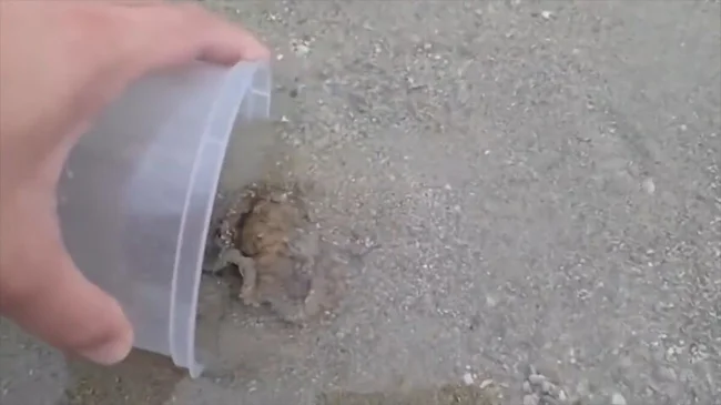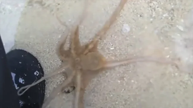 Тут мужчина помогает выбраться осьминогу, который застрял в песке во время прилива. Осьминог почувствовал себя лучше и уже приготовился плыть, но смотрите, что произошло, он в знак благодарности прикоснулся к человеку.