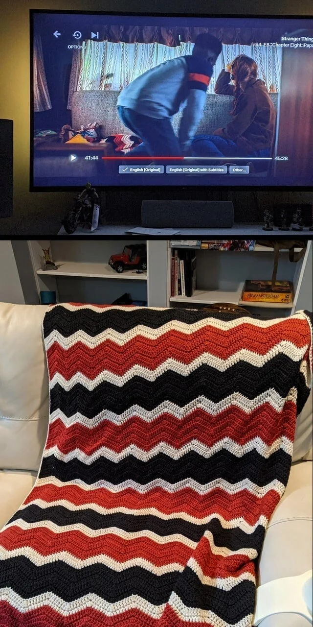 Смотрела «Очень странные дела» и увидела точную копию моего вязаного одеяла ручной работы