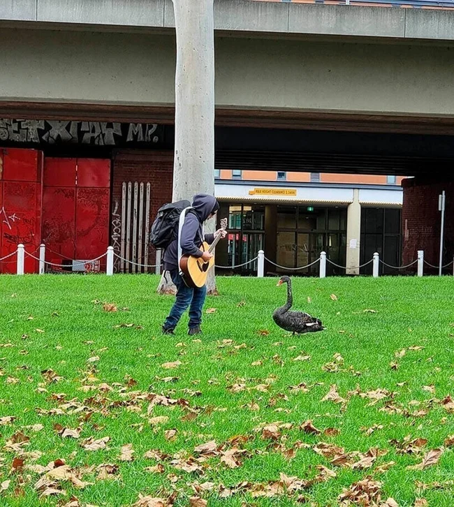 Кто бы мог подумать, что в городском парке можно встретить не только уличных музыкантов, но и их пернатых поклонников.