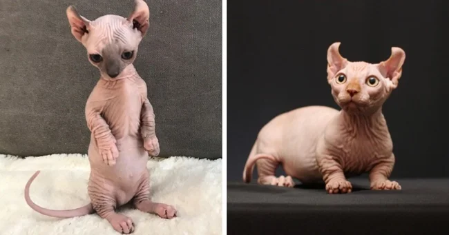 Карликовая кошка, которая была выведена путём скрещивания бесшёрстных канадских сфинксов. Родина породы — США.
