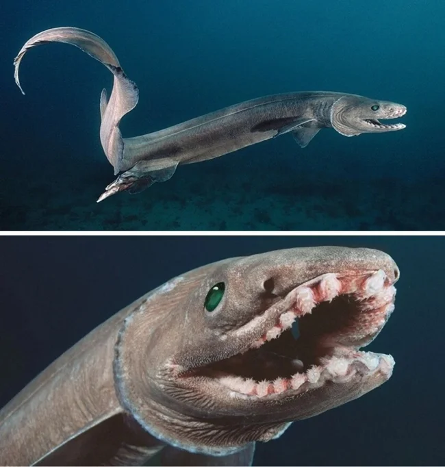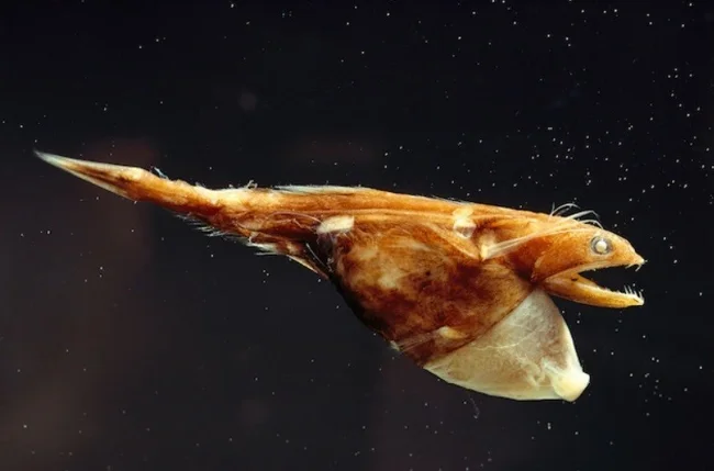 Жуткий суперхищник обладает телом угря, головой ящерицы и уймой острых зубов. Обитает странное создание на глубине от 1000 до 2500 метров.