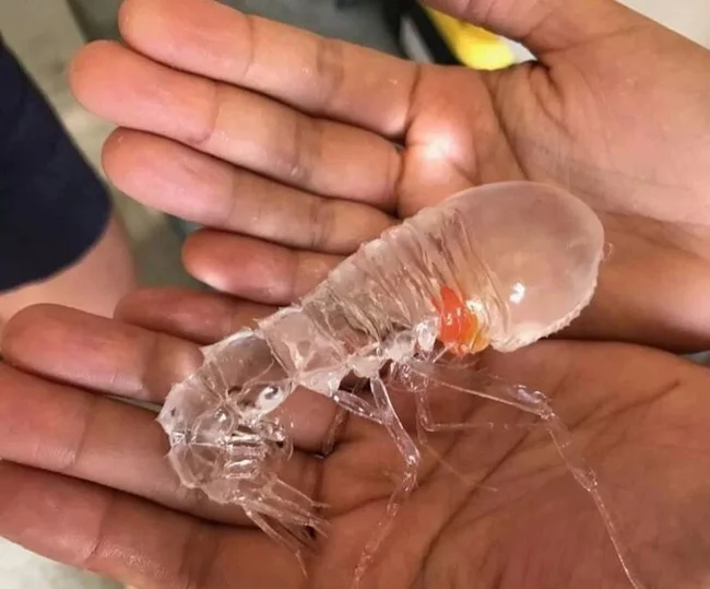 Это амфипод Cystisoma — ракообразные, которые характеризуются непигментированными прозрачными телами, что затрудняет их обнаружение