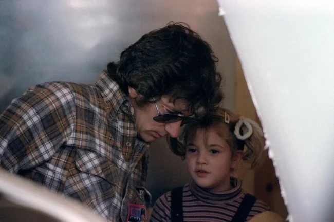 Стивен Спилберг и Дрю Бэрримор на съёмках фильма «Инопланетянин» (1982)
