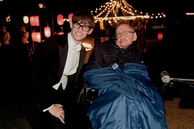 Эдди Редмэйн и Стивен Хокинг на съёмках «Вселенной Стивена Хокинга» (2014)