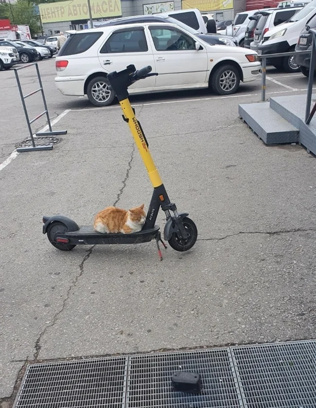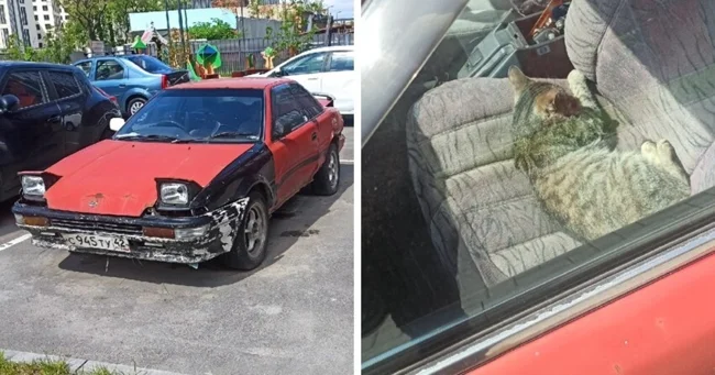 Стоит пару месяцев брошенная машина, но багажник приоткрыт, чем пользуется дворовый котик.