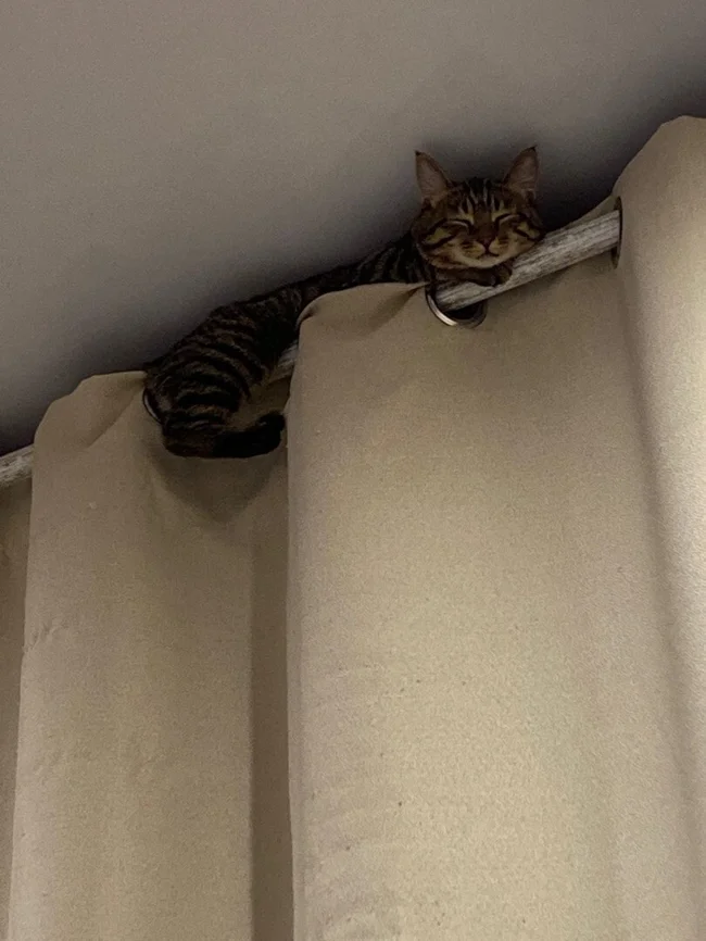 Судя по морде, на карнизе вполне комфортное для сна котогнездо.