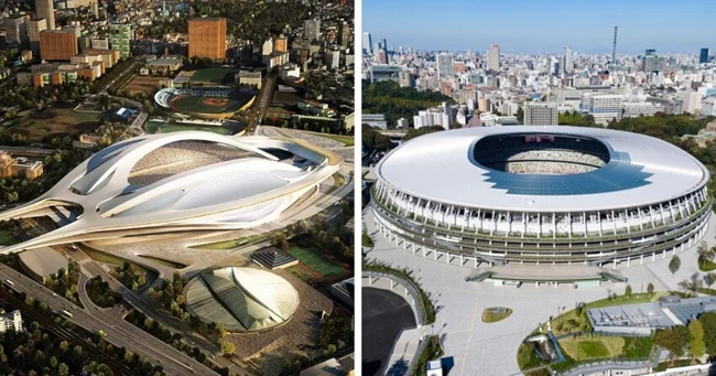 Подобное суперсовременное сооружение было спроектировано к Олимпийским играм 2020 года. Проект был свёрнут из-за задержки строительства здания, перерасхода средств и критики со стороны ведущих архитекторов и спортсменов, которые даже подали петицию об отказе от проекта из-за его масштабности, которая могла негативно сказаться на близлежащих объектах.