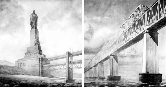 Мост проектировал советский архитектор Борис Константинов, но расходы, которые требовались для такого строительства, в послевоенное время оказались неподъёмными. Кстати, мост планировали сделать двухуровневым!