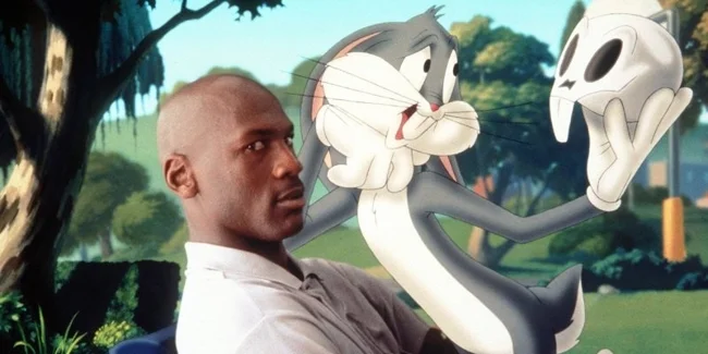 Баскетболист вместе с мультяшками борется с инопланетянами в привычном ему месте — на баскетбольной площадке.