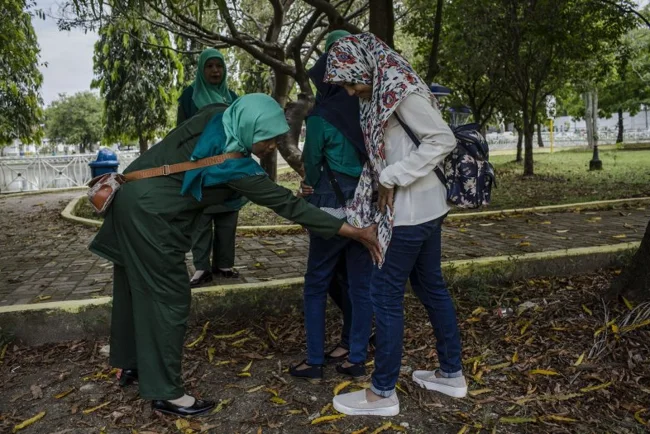 Дело в том, что некоторые мусульманские регионы Индонезии очень религиозны, порой – чрезмерно. Там есть полиция нравов, и суровые тетки, которые ходят по паркам и разгоняют парочек, чтобы девушка не смела оставаться с парнем тет-а-тет даже в общественном месте.