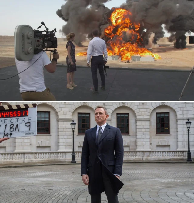 А ещё герой Дэниела Крейга изображён на экране в одежде и аксессуарах общей розничной стоимостью не менее 56 тысяч долларов: он носил четыре костюма-тройки Tom Ford, сделанных на заказ, стоимостью от 3805 долларов до 4881 доллара каждый, замшевую куртку Matchless Craig Blouson стоимостью 1248 долларов и часы Omega Seamaster 300 ограниченной серии стоимостью 6871 доллар.