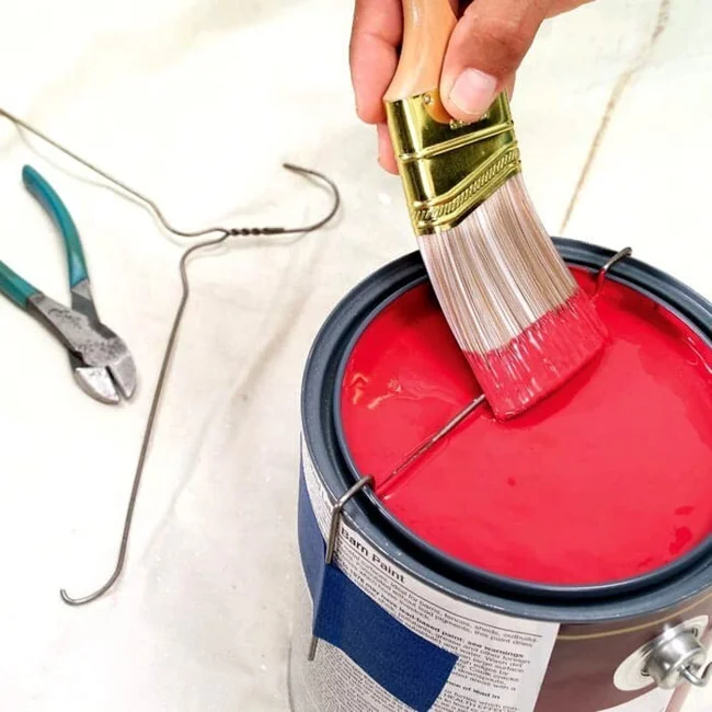 Излишки краски легко снять с помощью проволоки, надетой на банку