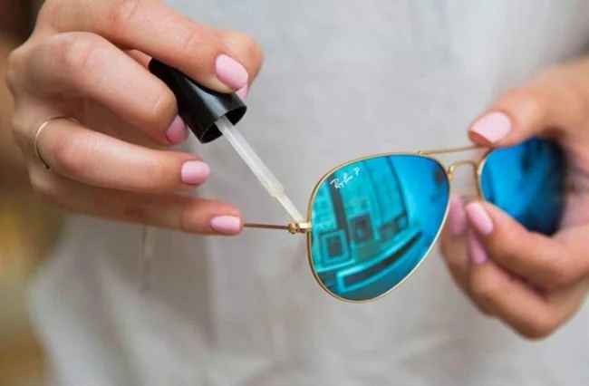 Дужку от очков можно закрепить, капнув на неё прозрачный лак