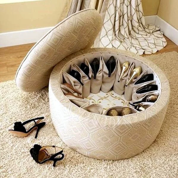 Когда в доме живёт девочка любого возраста, всегда стоит вопрос, куда деть бессчётное количество туфелек, сланцев, босоножек и так далее. В прихожей можно расположить пуфик, с которого удобно обуваться. А вот пуфик должен быть с секретом.