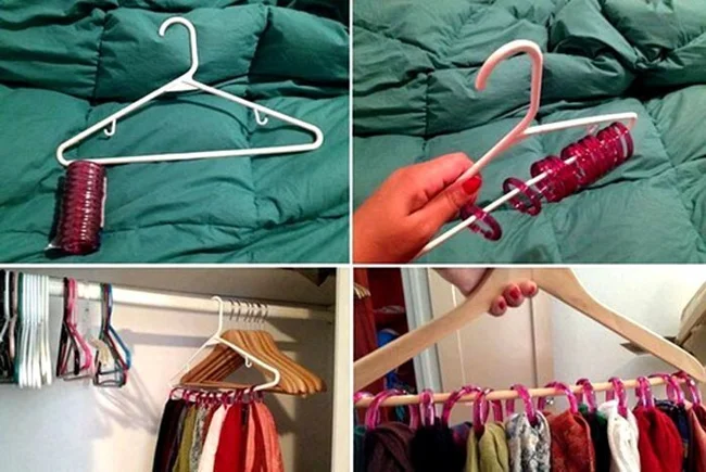 Кольца для занавески в ванную обретают вторую полезную жизнь на вешалке для шарфиков