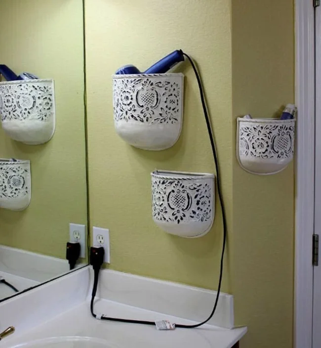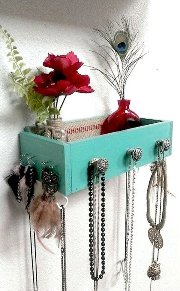 Можно использовать ставшие ненужными ящички от комодиков: они становятся удобным органайзером для мелочей, которые должны быть под рукой. К тому же, это просто красиво, если подойти к решению с ноткой креатива.