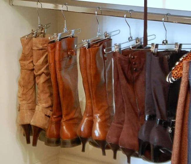 Сапоги с длинным голенищем тоже удобно хранить в подвешенном состоянии