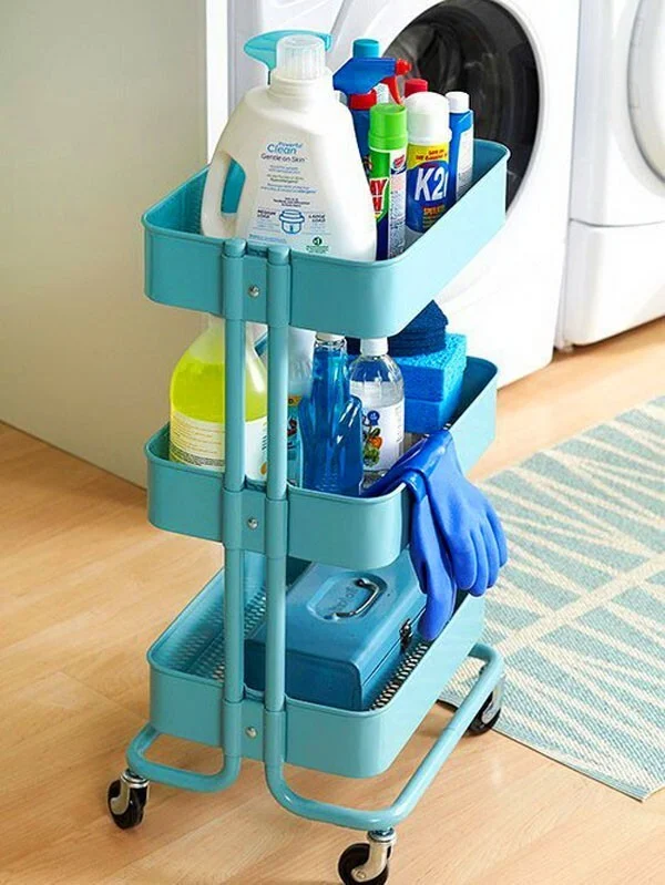 Приобретение такой этажерки на колёсах станет ценным и для ремонта, и для уборки