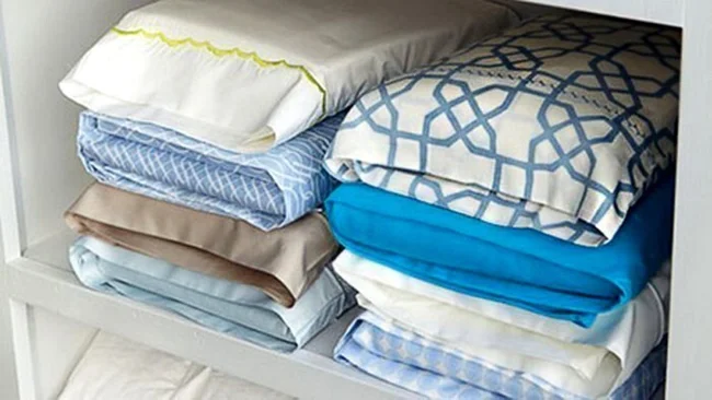 Чтобы постельное бельё в шкафу смотрелось аккуратно, а ещё его удобно было бы доставать, нужно просто хранить весь комплект в наволочке