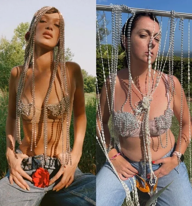 Не знаем, как вы, а мы не сразу заметили, что купальник сооружён из одноразовых масок. А что, отличная идея — масочный режим отменён, а запасы наверняка у кого-то да остались. Вдохновляйтесь! ????