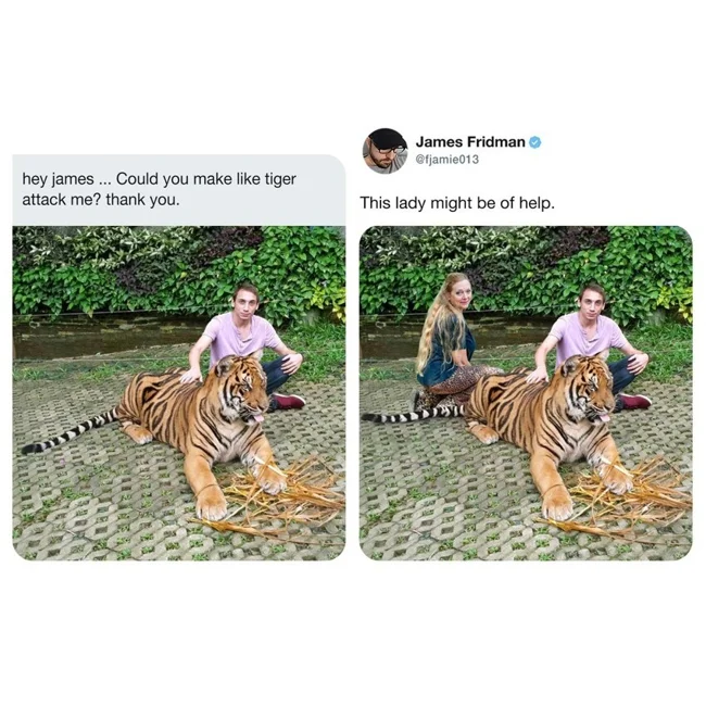 Привет, Джеймс! Можешь сделать так, чтобы тигр как бы нападал на меня?