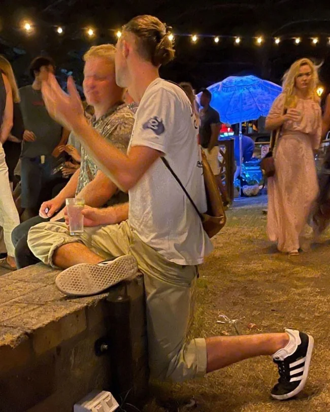 Если поблизости не оказалось скамьи, то чья-то нога вполне подойдёт